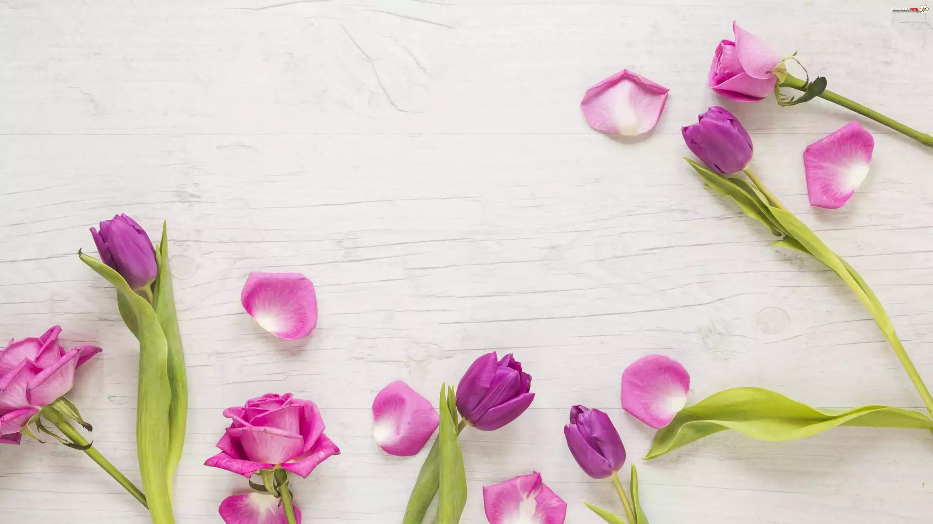 Róże, Tulipany, Płatki - Zdjęcia