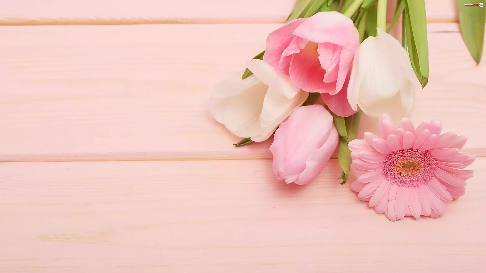 Tulipany, Gerbera, Różowe, Tło - Zdjęcia