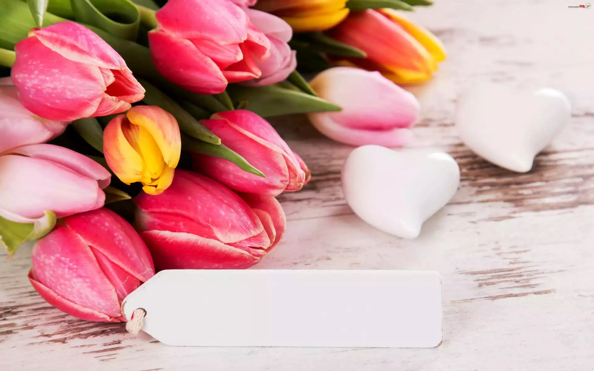 Tulipany, Różowe, Serduszka, Kompozycja - Zdjęcia