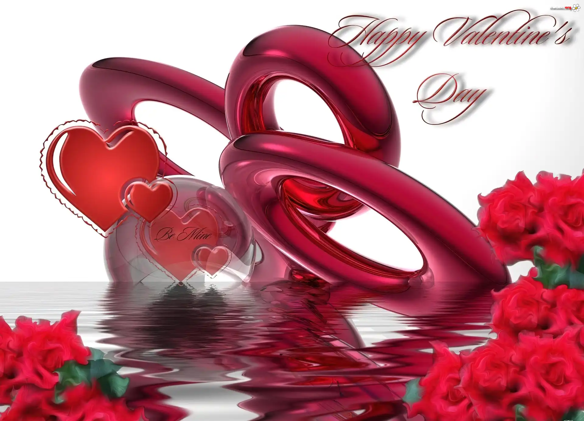 Kwiat Walentynki, Czerwone, Serduszka, Róże, Kółka