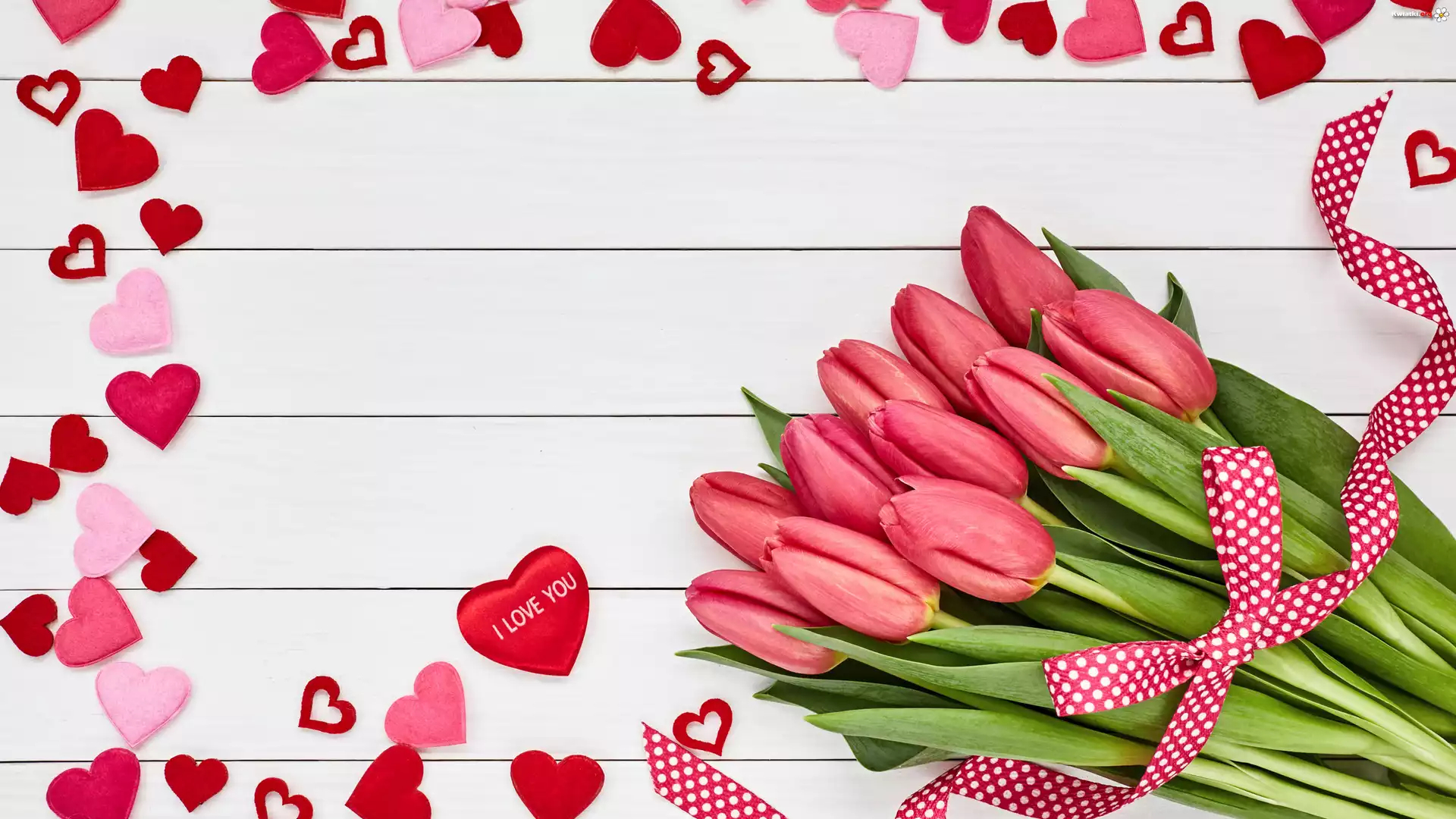 Walentynki, Miłość, Tulipany, Serduszka - Zdjęcia