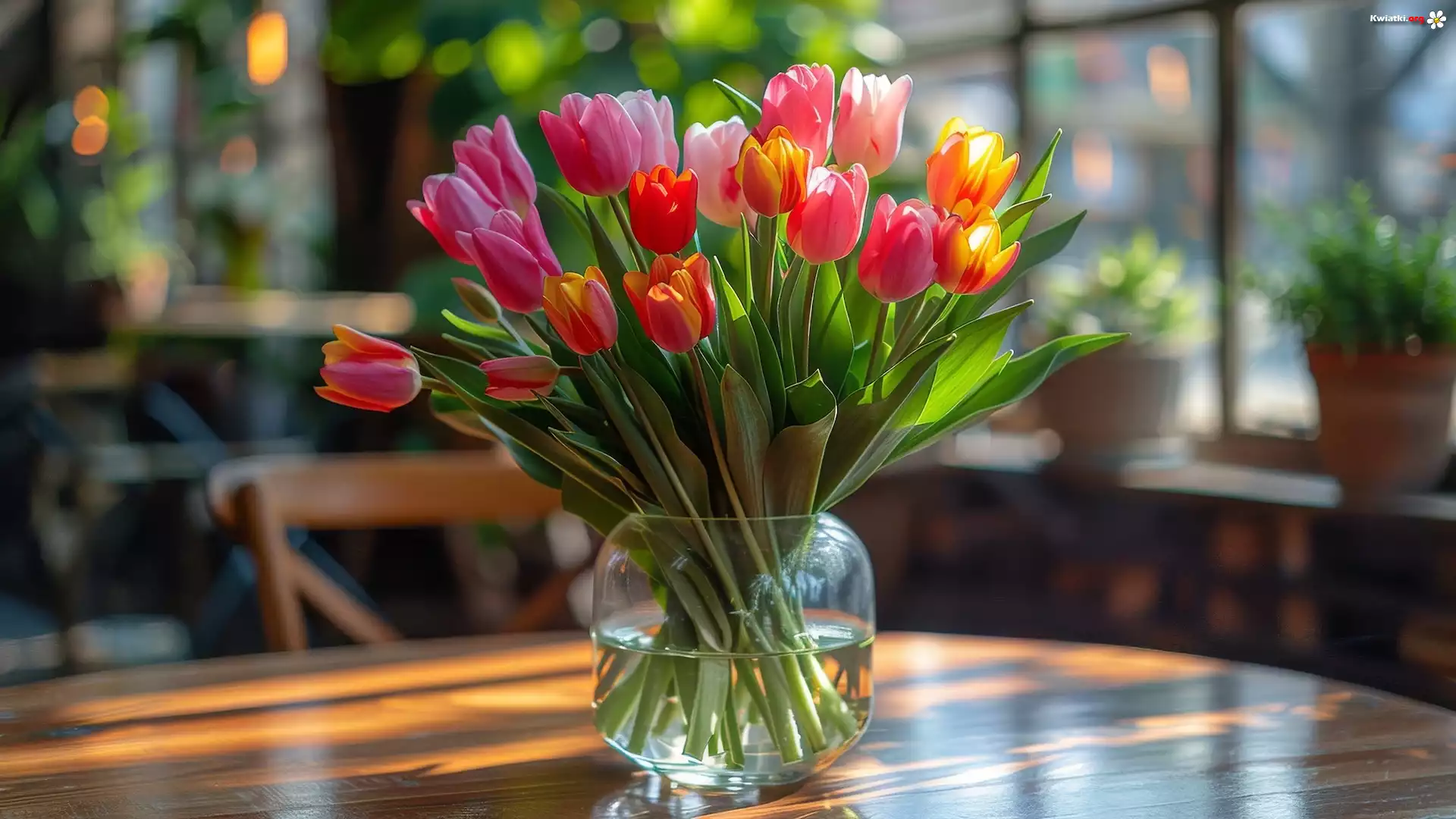 Kwiat Kwiaty, Tulipany, Kolorowe, Wazon