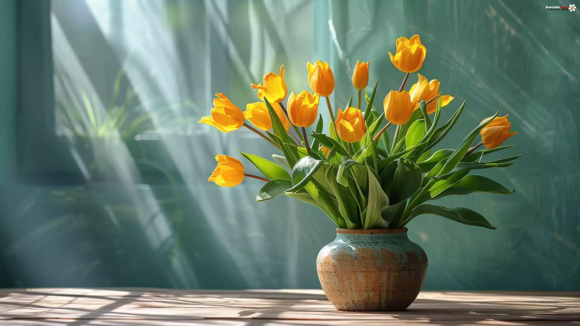 Kwiaty, Tulipany, Żółte, Wazon, Przebijające światło - Zdjęcia