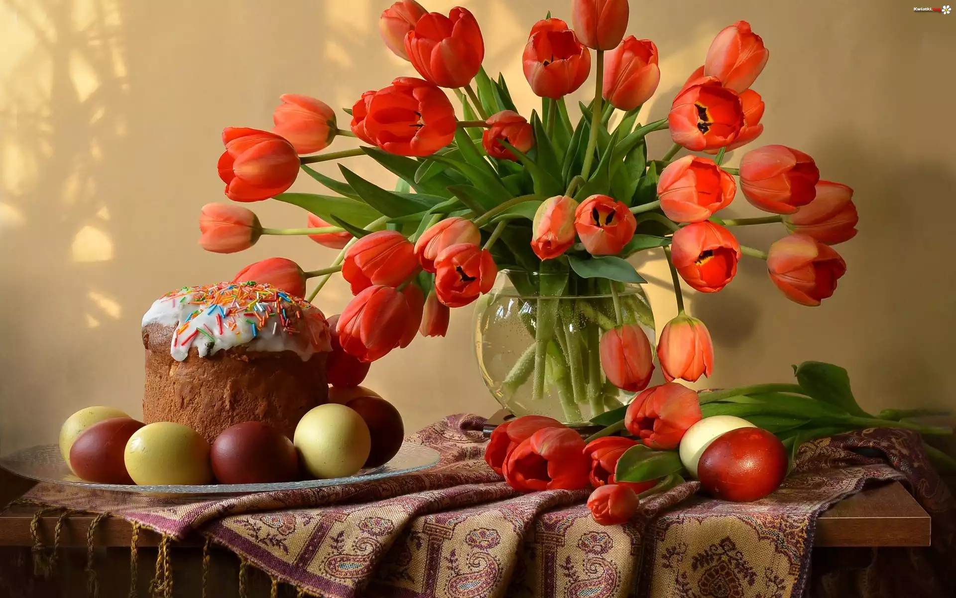 Kwiat Wielkanoc, Ciasto, Babka, Tulipany, Kolorowe, Jajka
