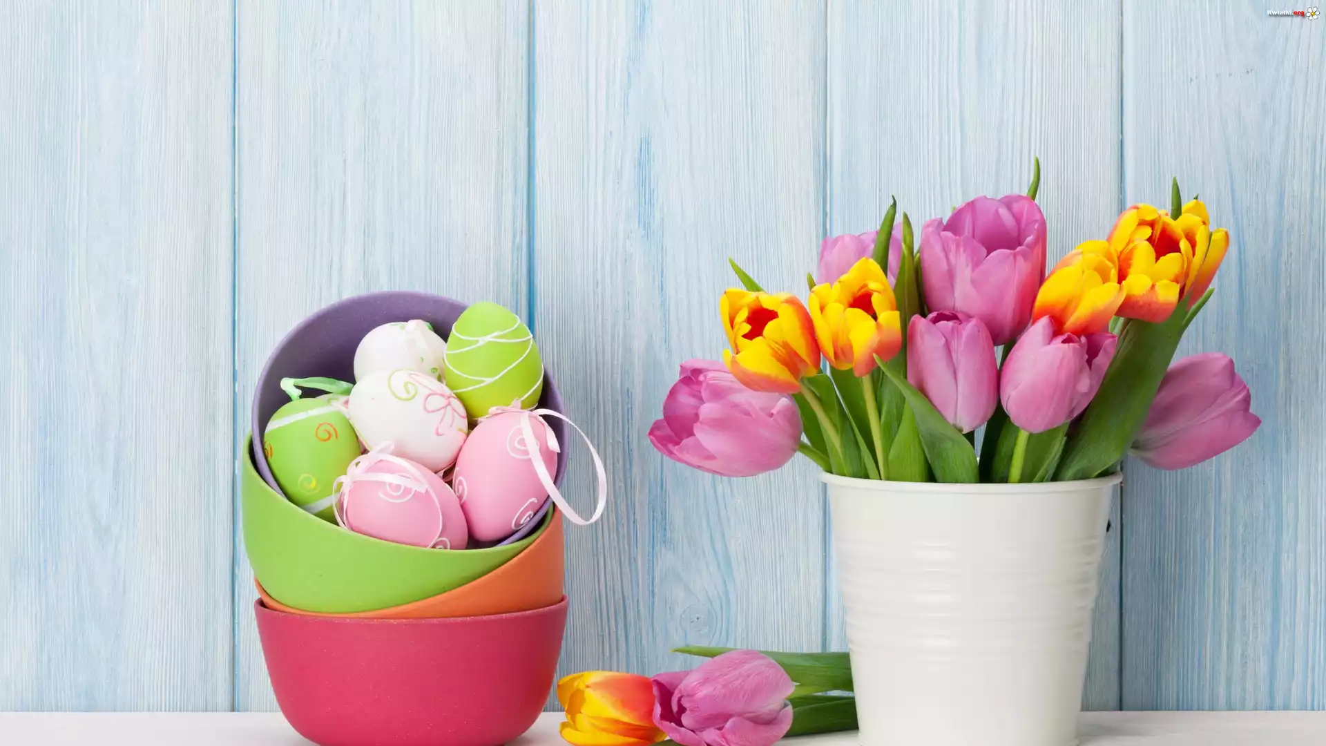 Wielkanoc, Kompozycja, Bukiet, Tulipany, Pisanki - Zdjęcia