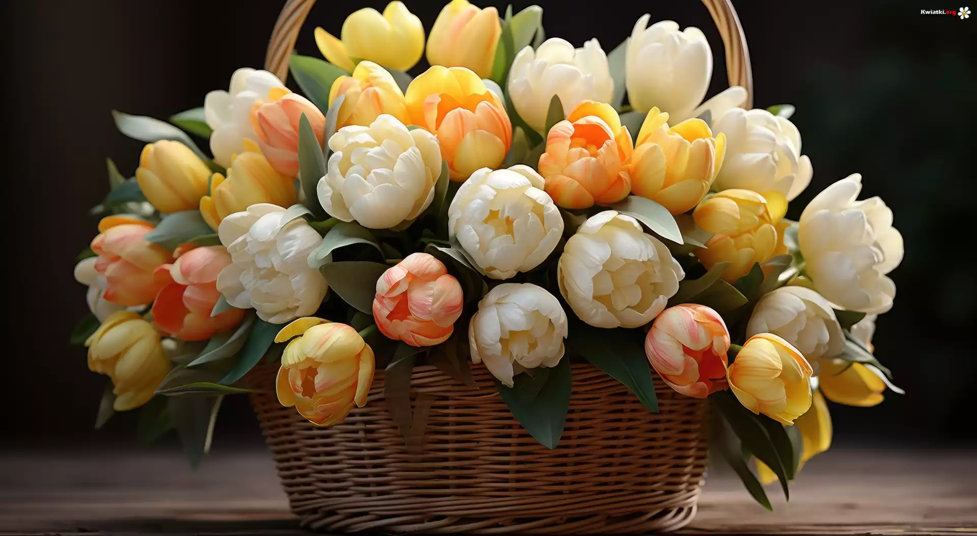 Kwiat Kolorowe, Tulipany, Koszyk, Wiklinowy