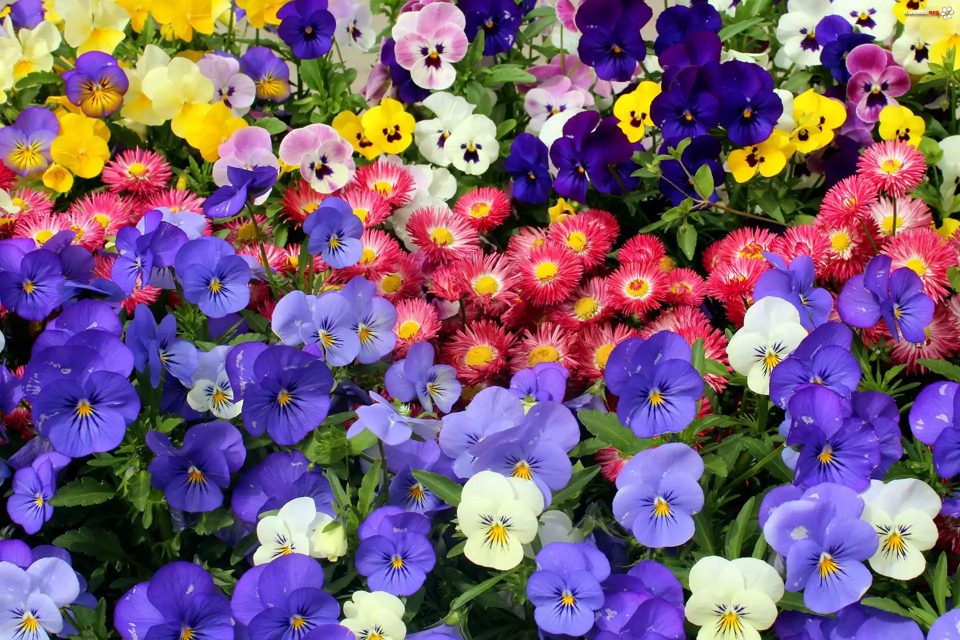 Kwiaty, Wiosenne, Kolorowe, Bratki, Stokrotki - Zdjęcia