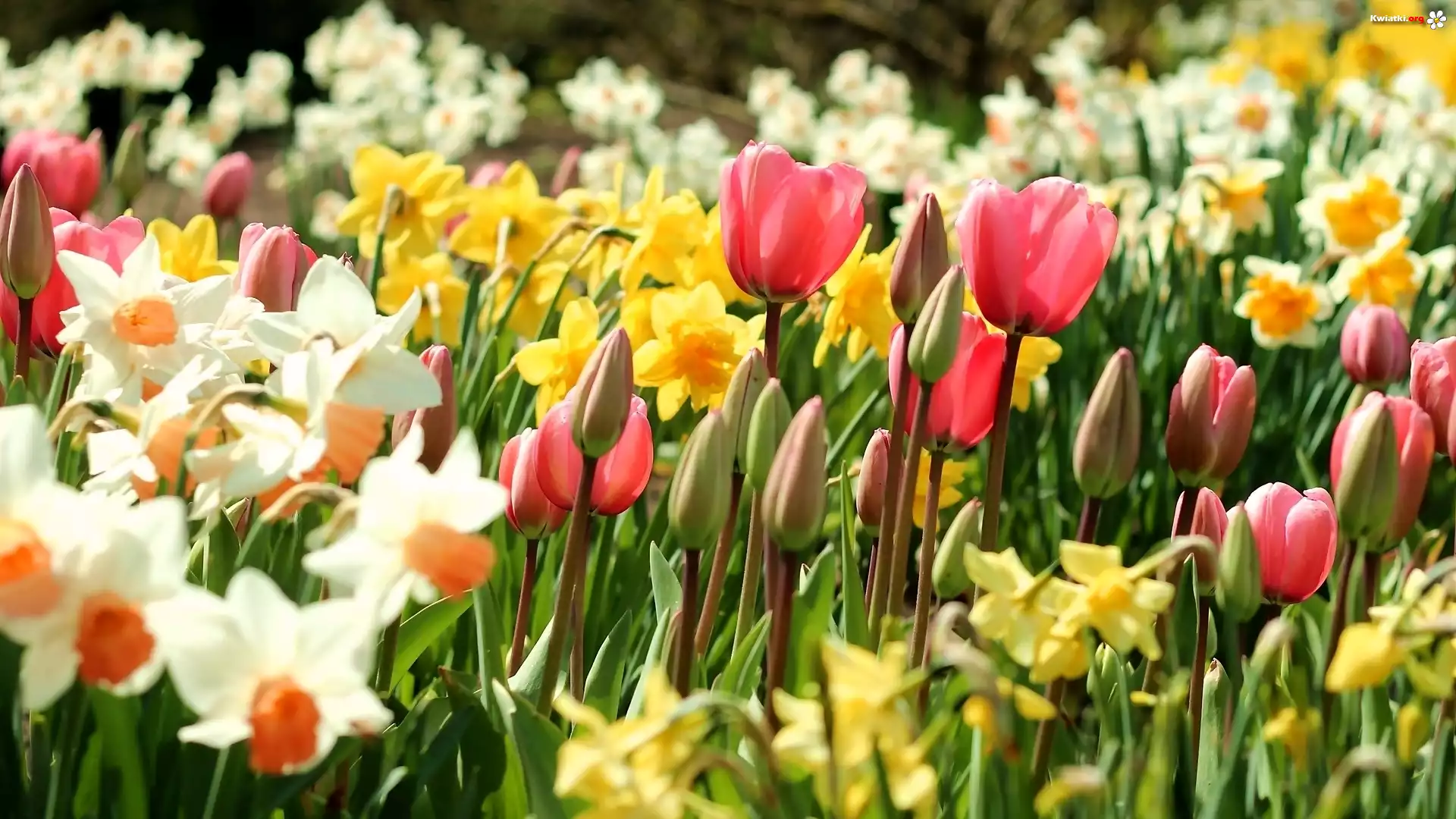 Kwiat Wiosenne, Kwiaty, Tulipany, Narcyze, Żonkile