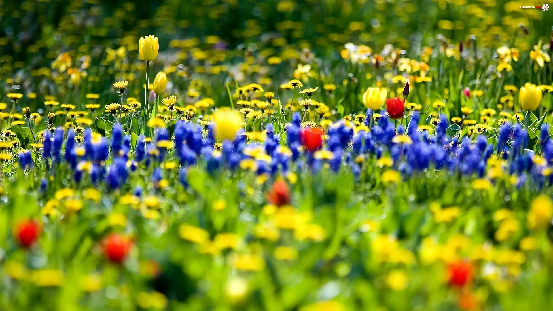 Kwiat Wiosna, Kwietna, Łąka, Tulipany, Rozmycie