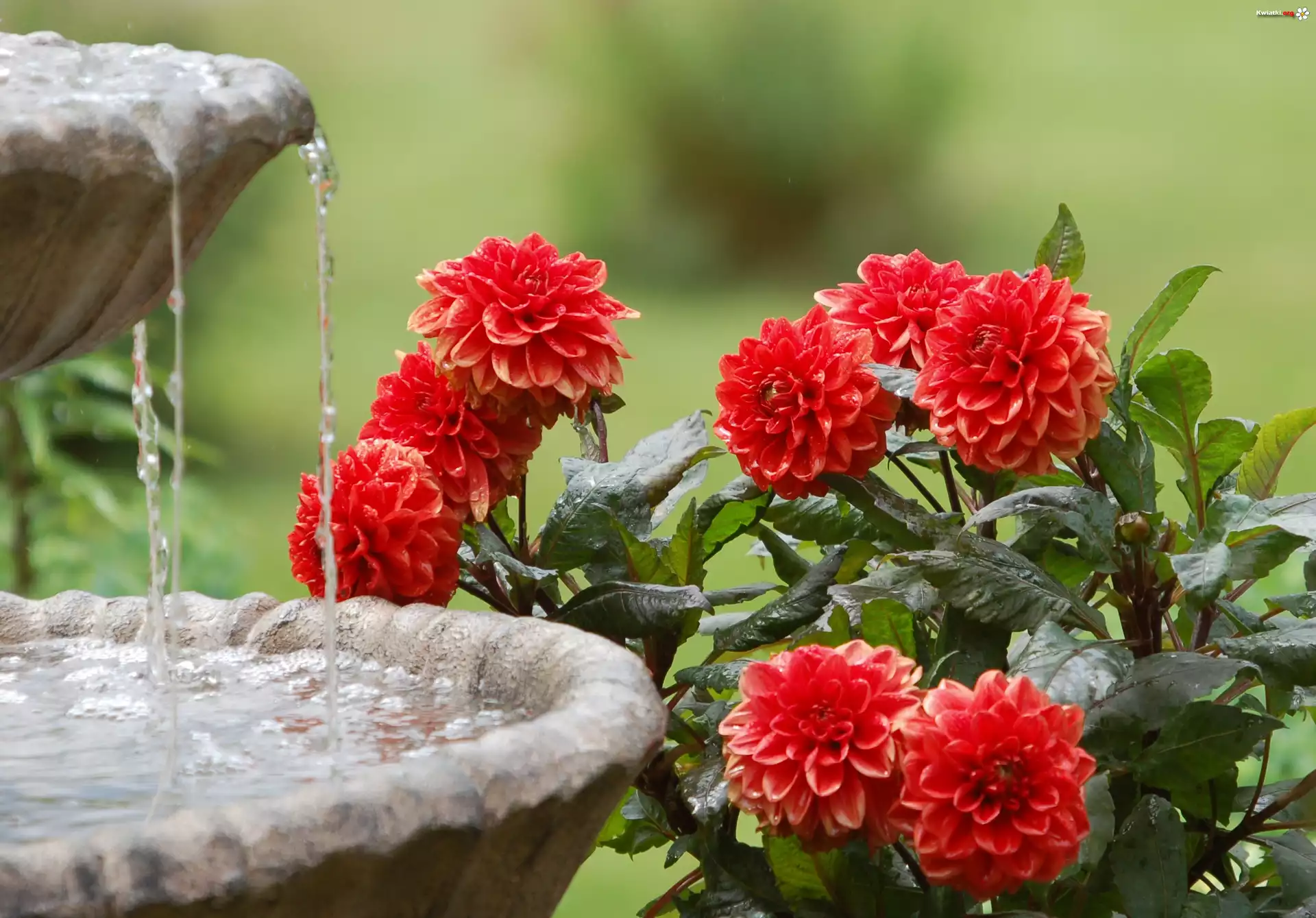 Fontanna, Woda, Kwiaty - Zdjęcia
