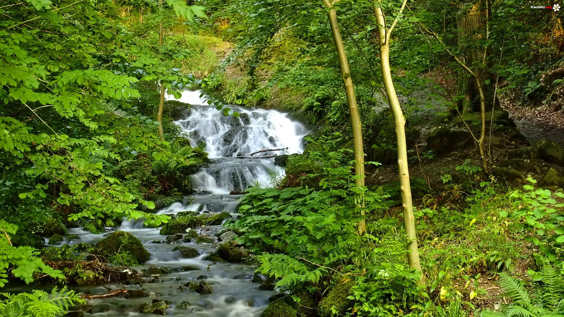 Wodospad, Potok, Górski, Roślinność, Wiosna - Zdjęcia