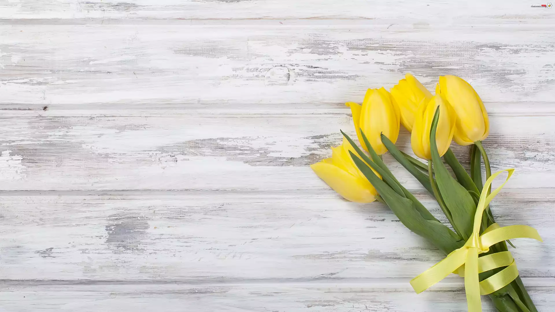 Kwiat Żółte, Tulipany, Wstążka, Bukiet
