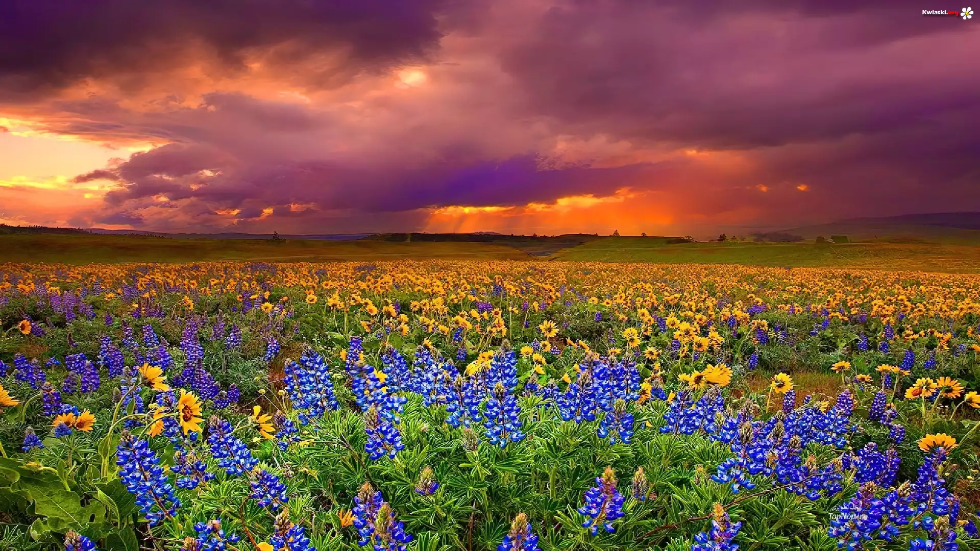 Kwiat Zachód, Słońca, Łąka, Kwiaty