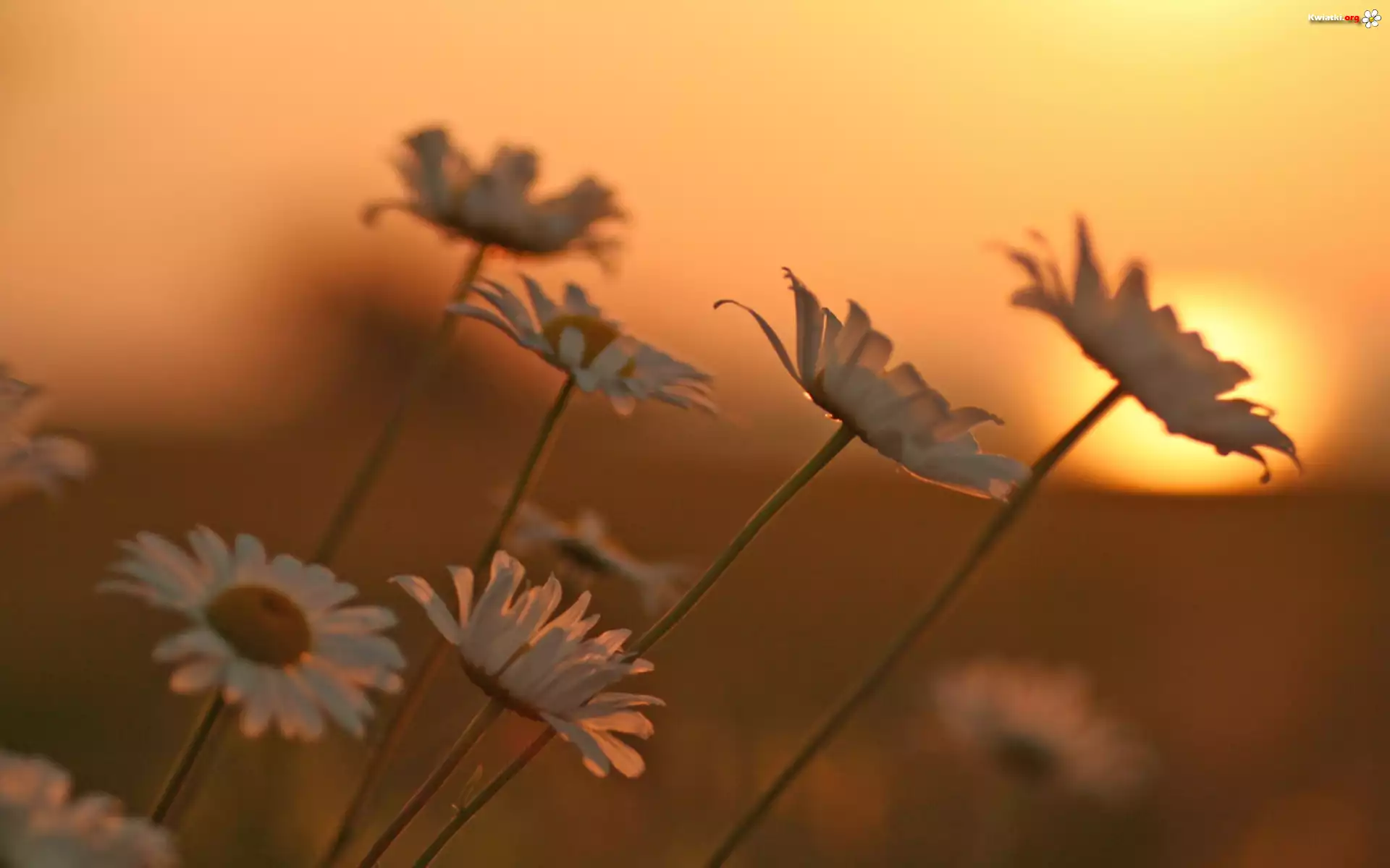 Zachód, Słońca, Białe, Kwiatki - Zdjęcia