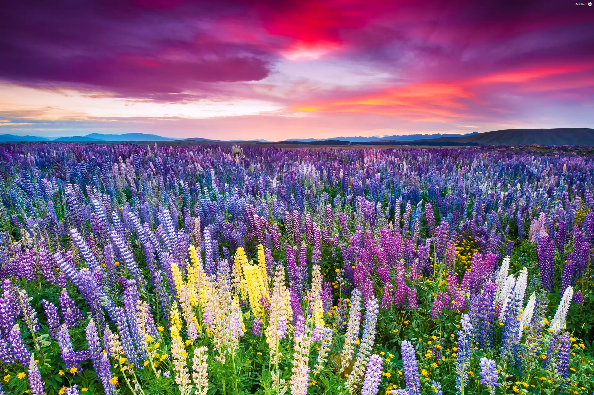 Zachód, Słońca, Kolorowe, Kwiaty - Zdjęcia