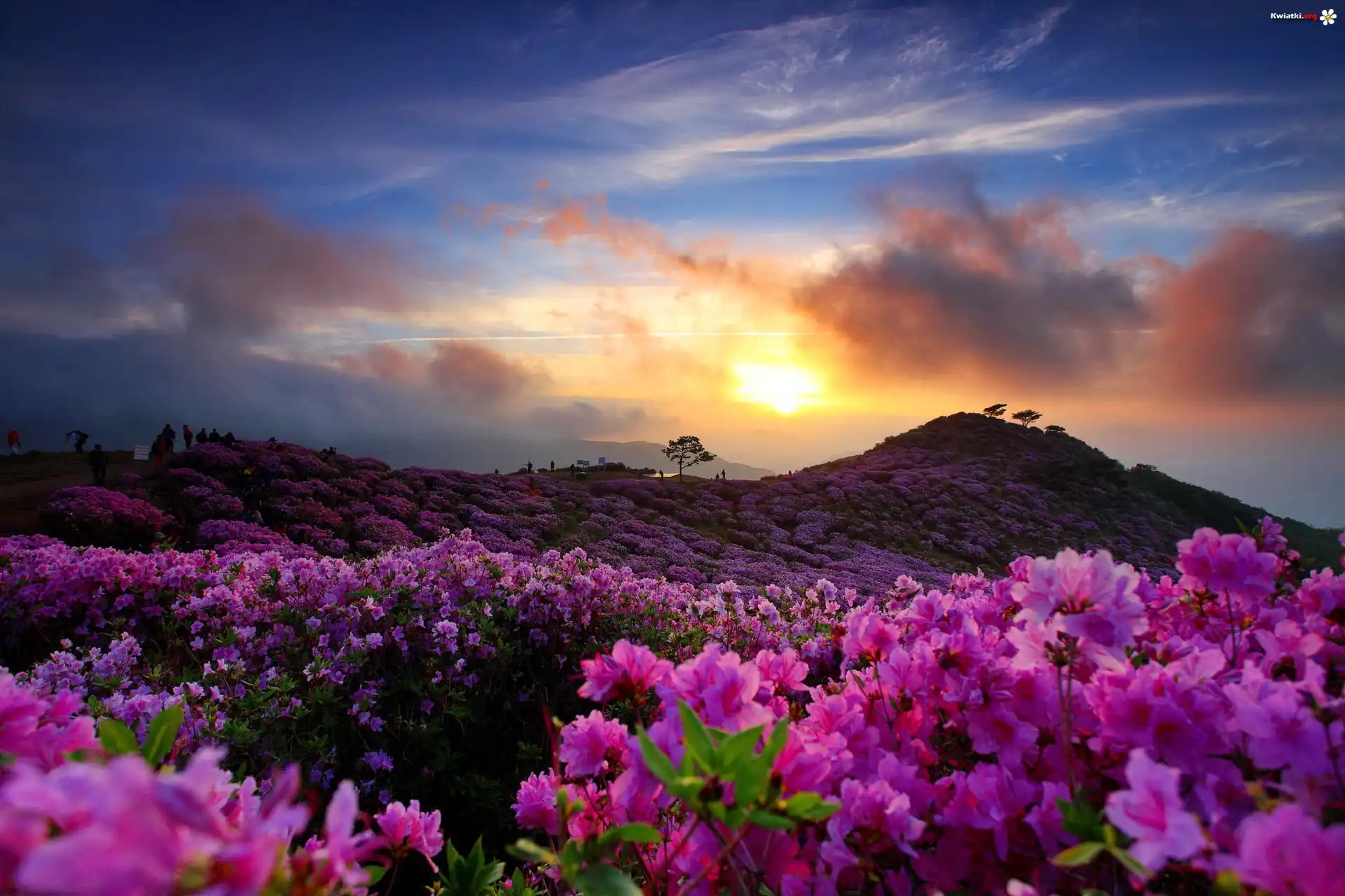 Zachód słońca, Kwiaty, Wzgórze - Zdjęcia