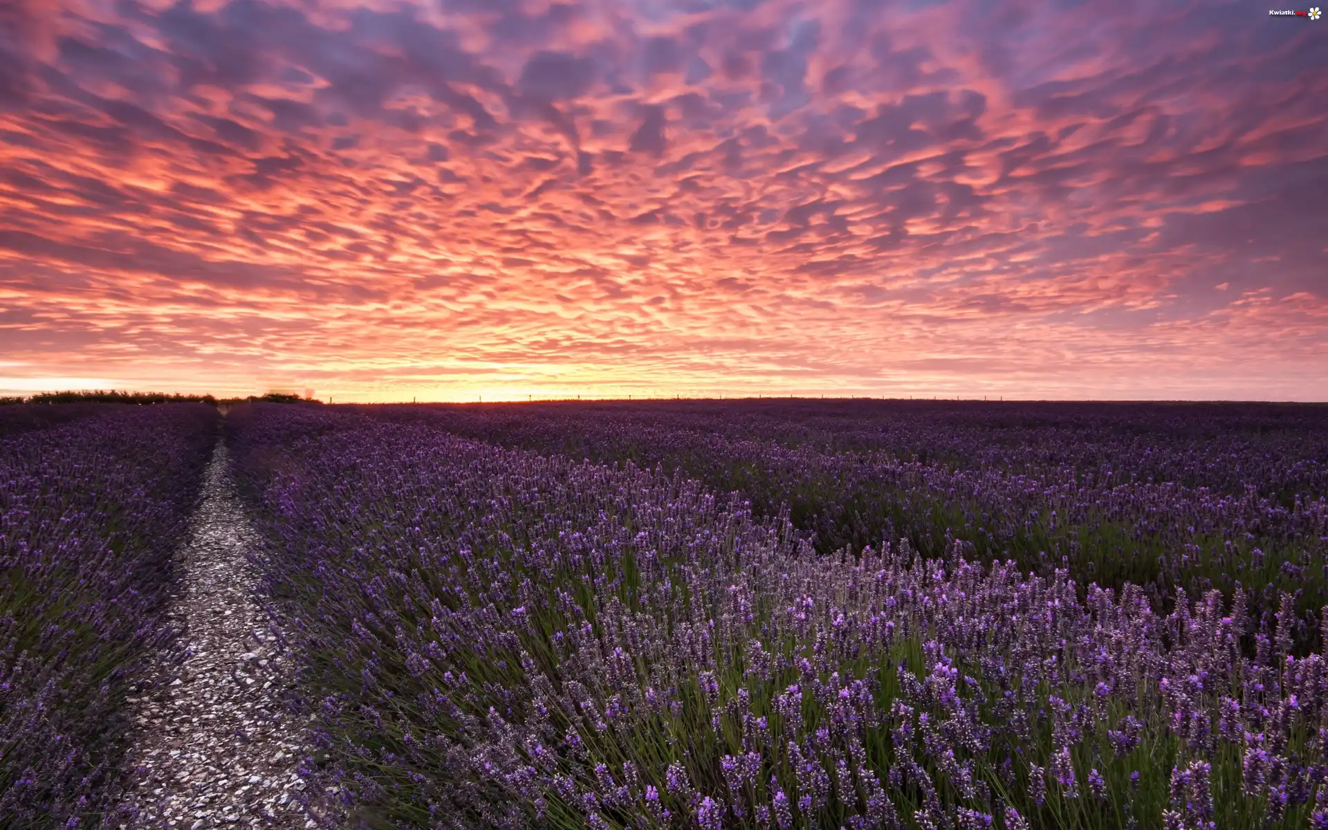 Kwiat Zachód, Słońca, Lawendowe, Pola