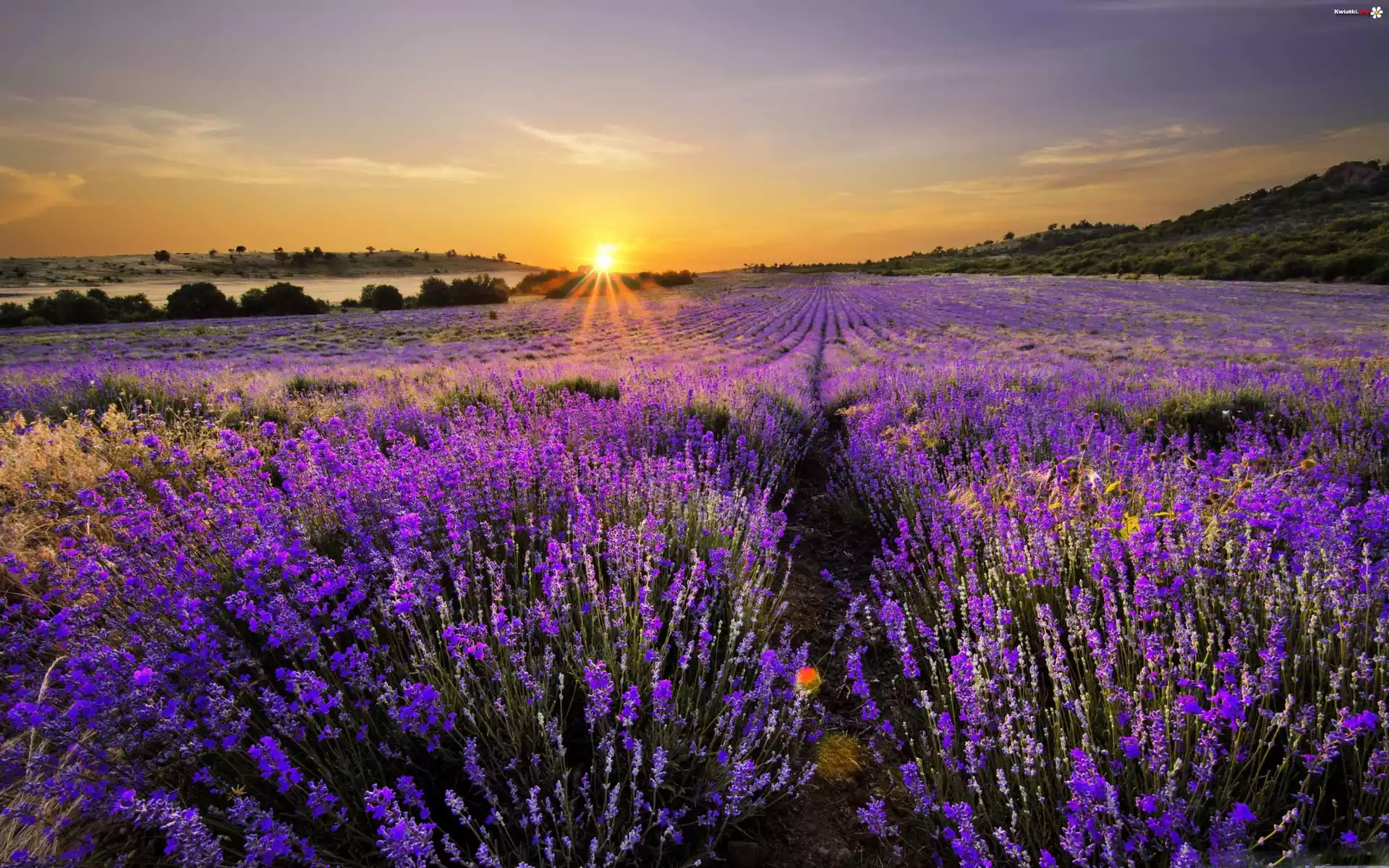 Kwiat Zachód, Słońca, Lawendowe, Pole
