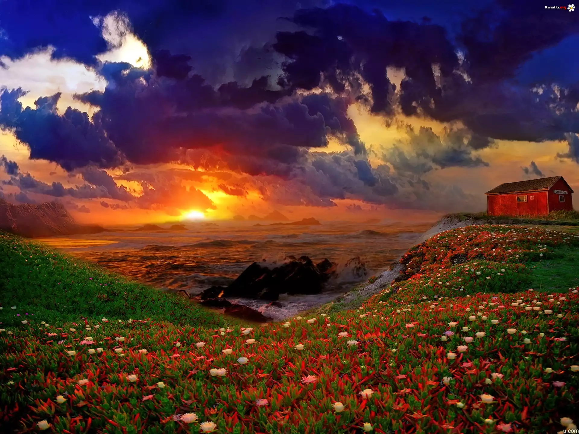 Kwiat Zachód, Słońca, Morze, Kwiatki