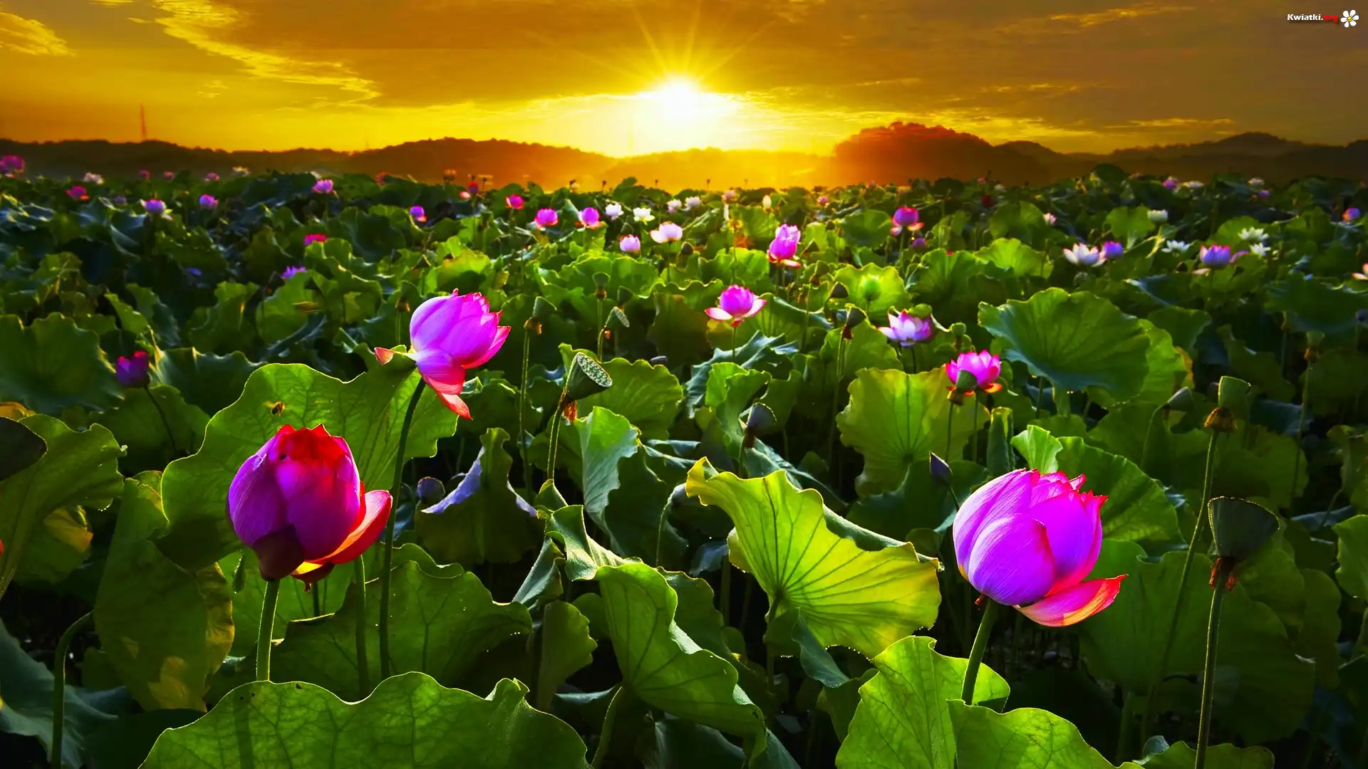 Kwiat Zachód, Słońca, Pole, Kwiatów