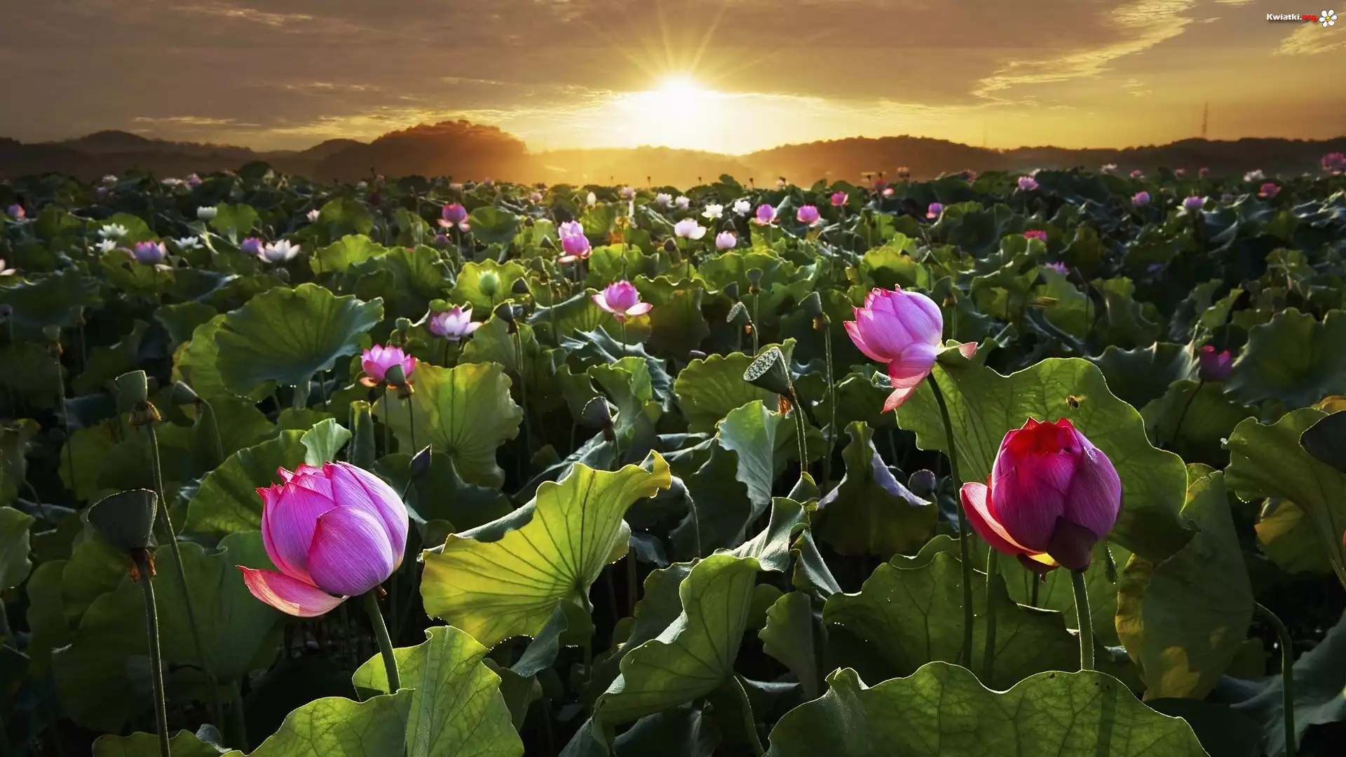 Zachód, Słońca, Promienie, Słońca, Kwiaty - Zdjęcia