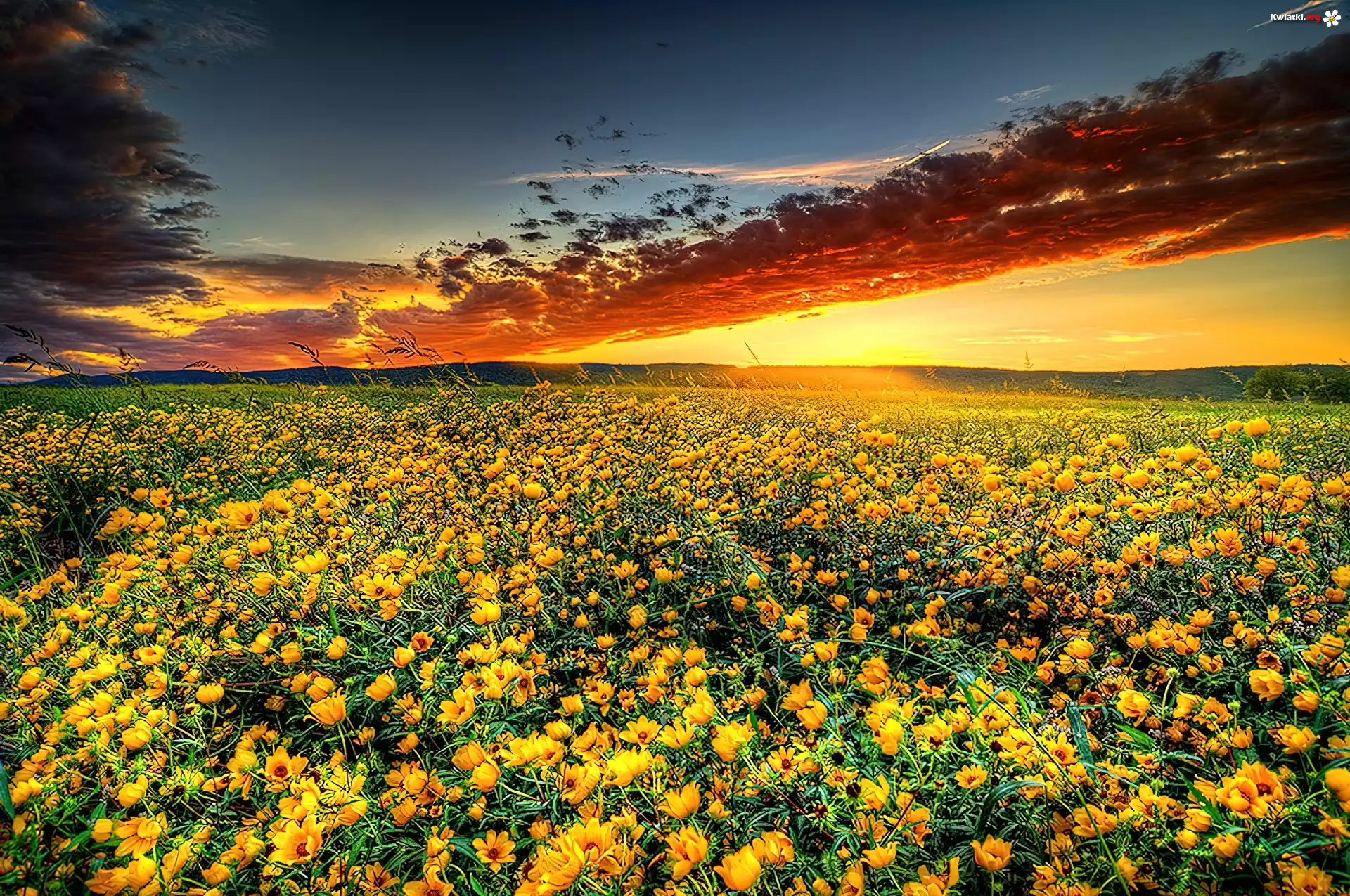 Kwiat Zachód, Słońca, Trawa, Kwiatki