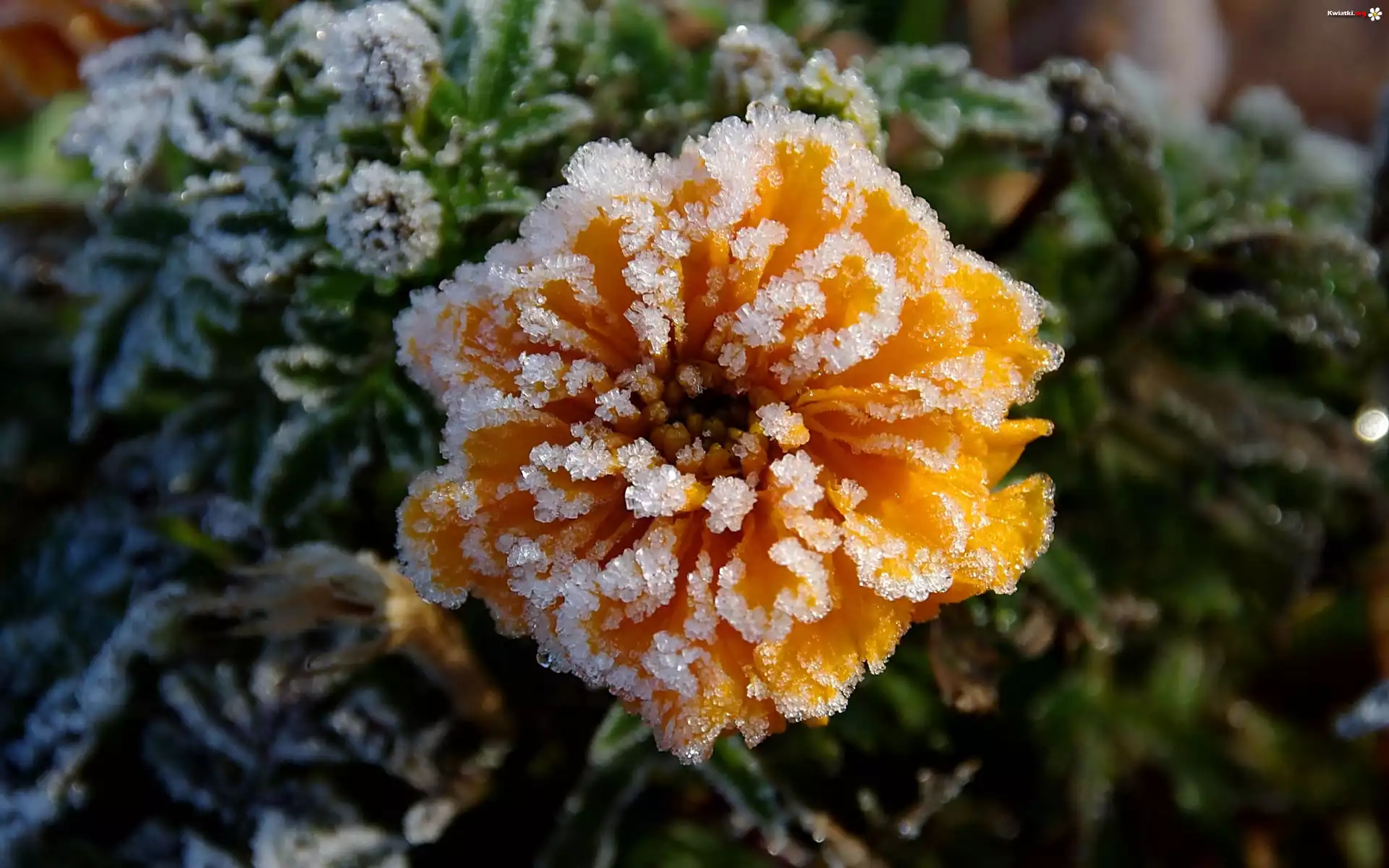Zamrożony, Żółty, Kwiat, Liście - Zdjęcia