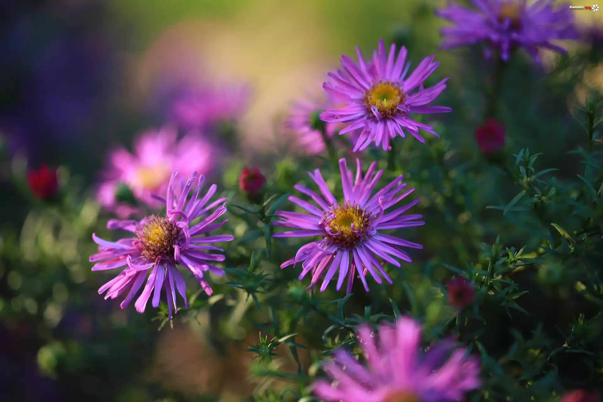 Fioletowe, Astry, Kwiaty, Zbliżenie - Zdjęcia