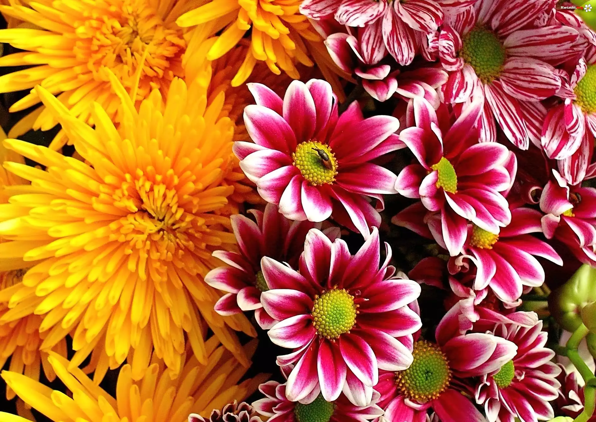Żółta, Chryzantema, Złocień, Różowy - Zdjęcia