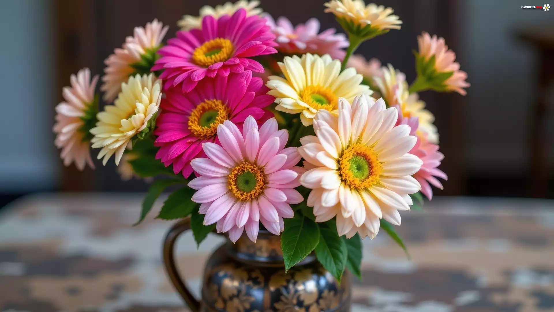 Kwiat Kwiaty, Żółte, Różowe, Gerbery, Dzbanek