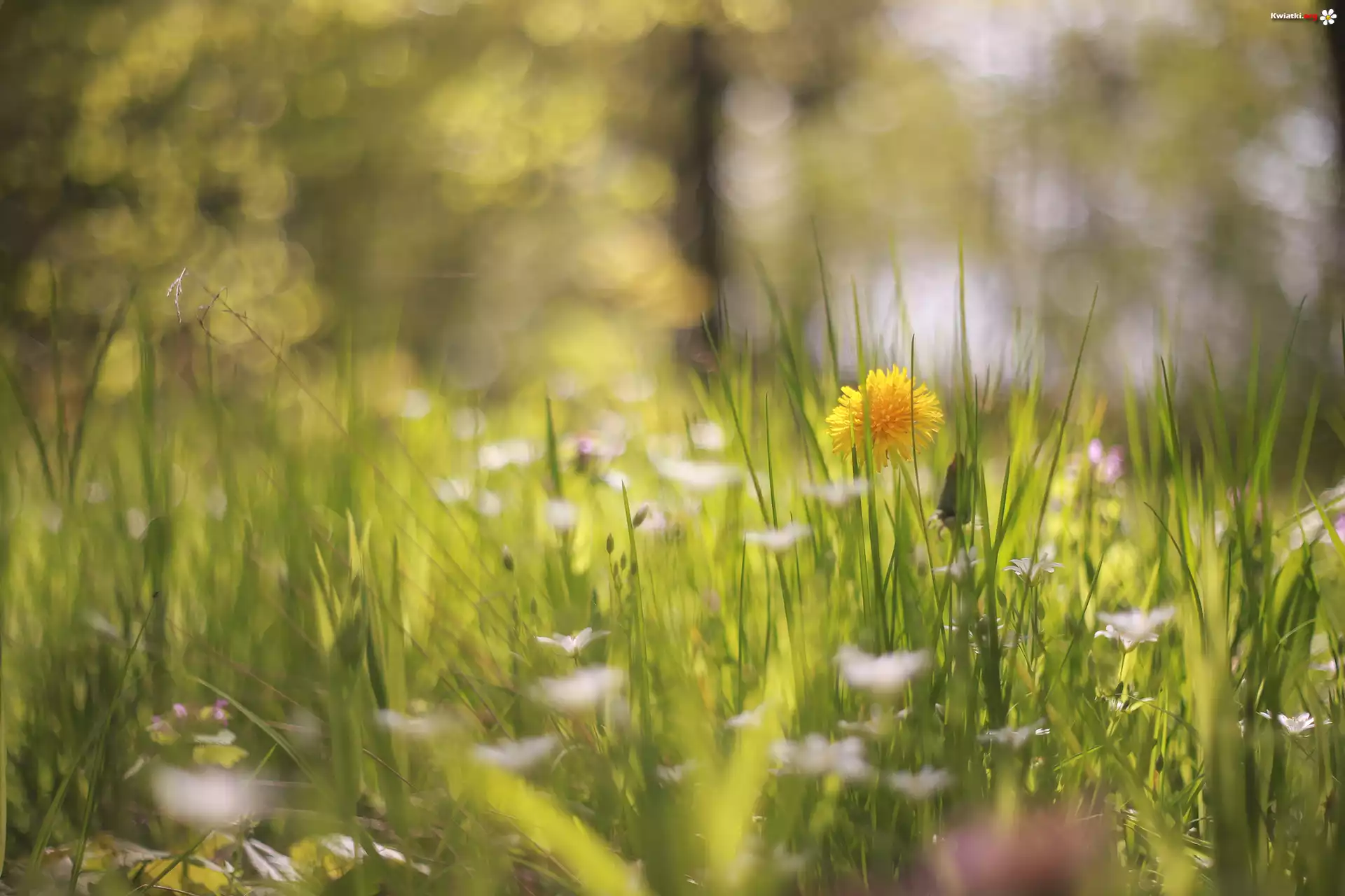 Kwiat Mlecz, Mniszek lekarski, Żółty, Kwiat, Trawa
